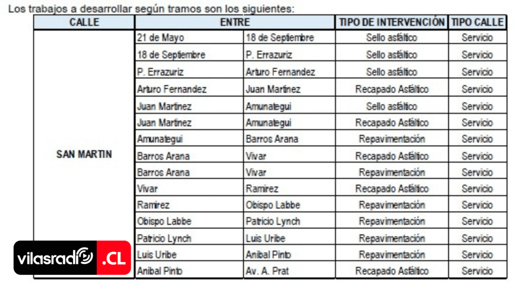 El proyecto, financiado por el Fondo Nacional de Desarrollo Regional (FNDR), intervendrá las calles San Martín, entre 21 de Mayo y 18 de Septiembre – Juan Martínez y Amunategui y otras calles más. Thompson, entre Héroes de la Concepción y Óscar Bonilla, Arturo Fernández y Errázuriz. Calle Ramírez entre Tarapacá y Thompson también tendrá trabajos programados. Otra calle que será intervenida es calle Zegers, en diferentes tramos como, por ejemplo, calle Vivar y Barros Arana, Óscar Bonilla y Héroes de la Concepción. (revisa las gráficas aquí).