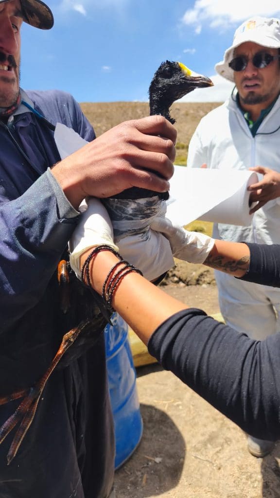 Además, se registró daño en pajonales, poáceas, tolas, suputulas y yaretas, estas últimas clasificadas como vulnerables. Para evitar que nuevas aves caigan en la zona contaminada, los equipos realizan perturbación controlada sobre el espejo de agua.