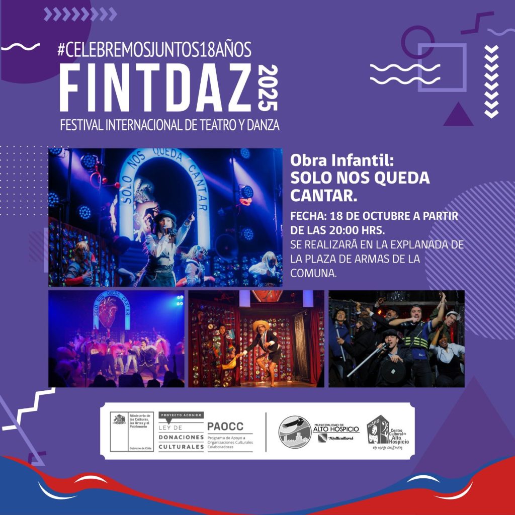 El montaje, a cargo de la Corporación de Cultura y Turismo de Calama, llega a la comuna en el marco del 18° Festival Internacional de Teatro y Danza (FINTDAZ), uno de los eventos artísticos más relevantes del norte del país. La actividad es organizada por el Centro Cultural de Alto Hospicio, con el apoyo del alcalde Patricio Ferreira y el Cuerpo de Concejales, quienes han impulsado una nutrida cartelera gratuita para celebrar la cultura en la ciudad.