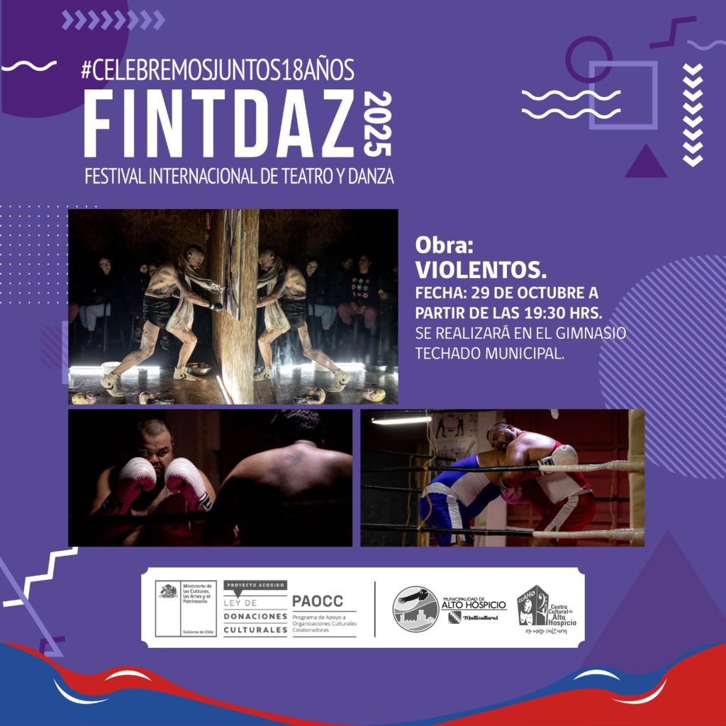 Y para cerrar el mes, el 29 de octubre, nuevamente el Gimnasio Techado Municipal abrirá sus puertas para recibir la obra “Violentos”, una potente puesta en escena que aborda temas sociales con una mirada crítica y contemporánea.