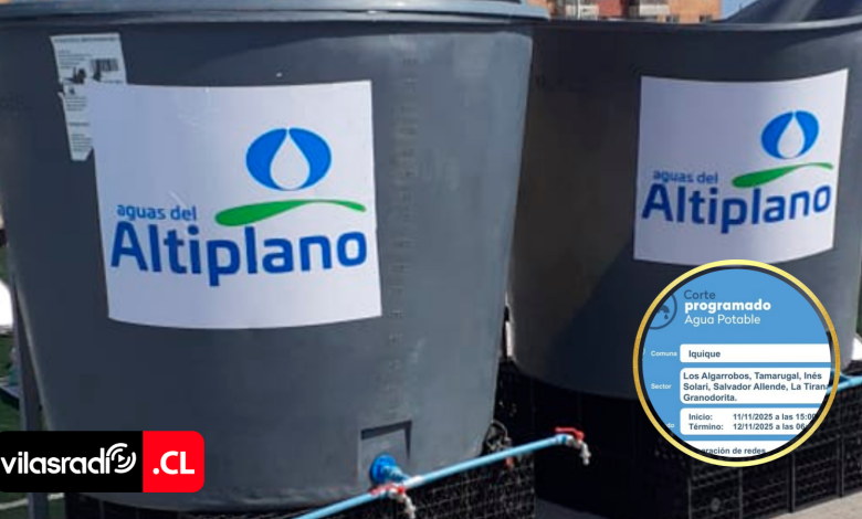 Aguas del Altiplano informa sobre un corte programado de agua potable que afectará al sector sur de la comuna de Iquique a partir de este martes 11 de noviembre.