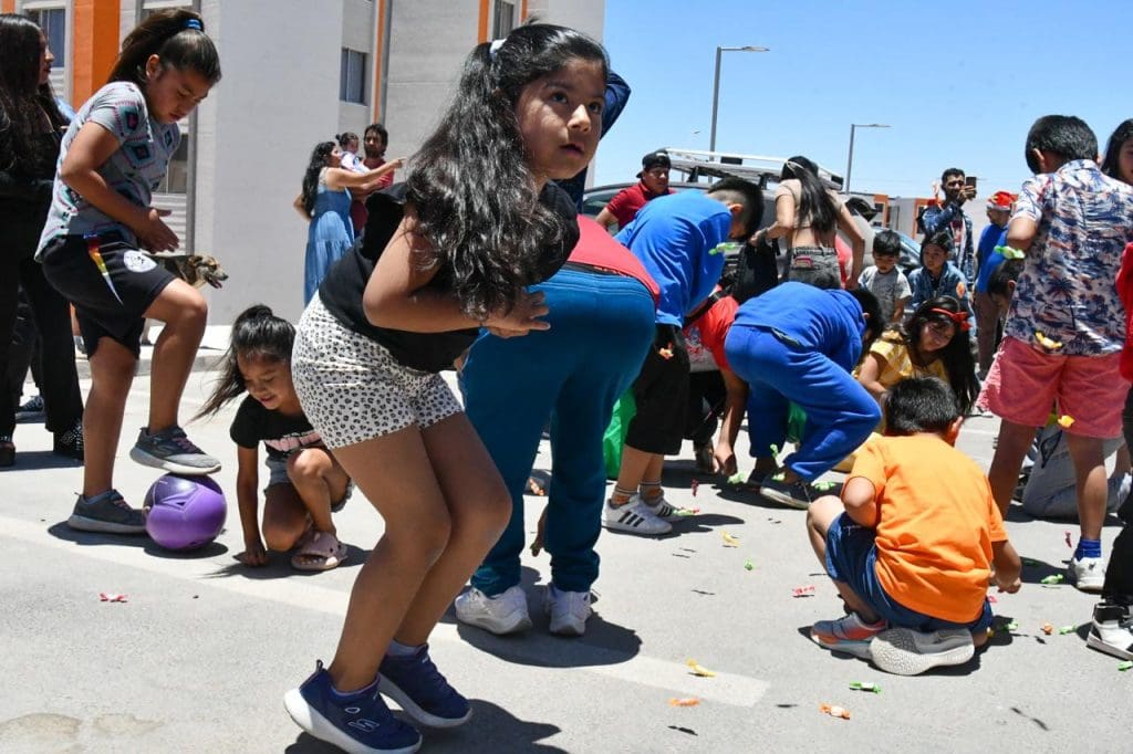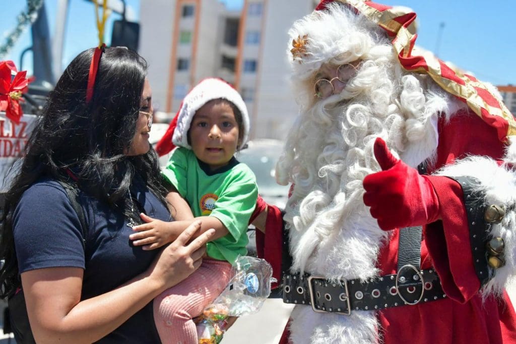 Uno de los momentos más esperados fue la presencia del Viejito Pascuero, quien lideró la caravana y compartió con niñas y niños, permitiendo que las familias se tomaran fotografías y vivieran un momento especial. Además, durante la actividad se realizó la entrega de dulces a los menores que participaron en los distintos puntos del trayecto.
