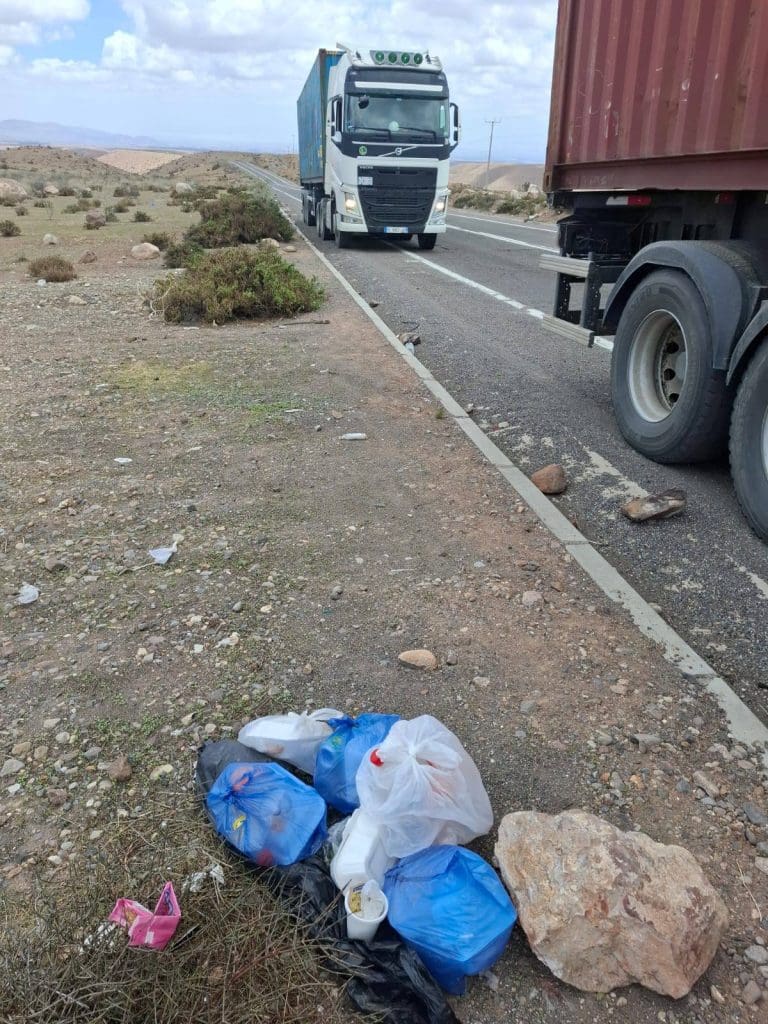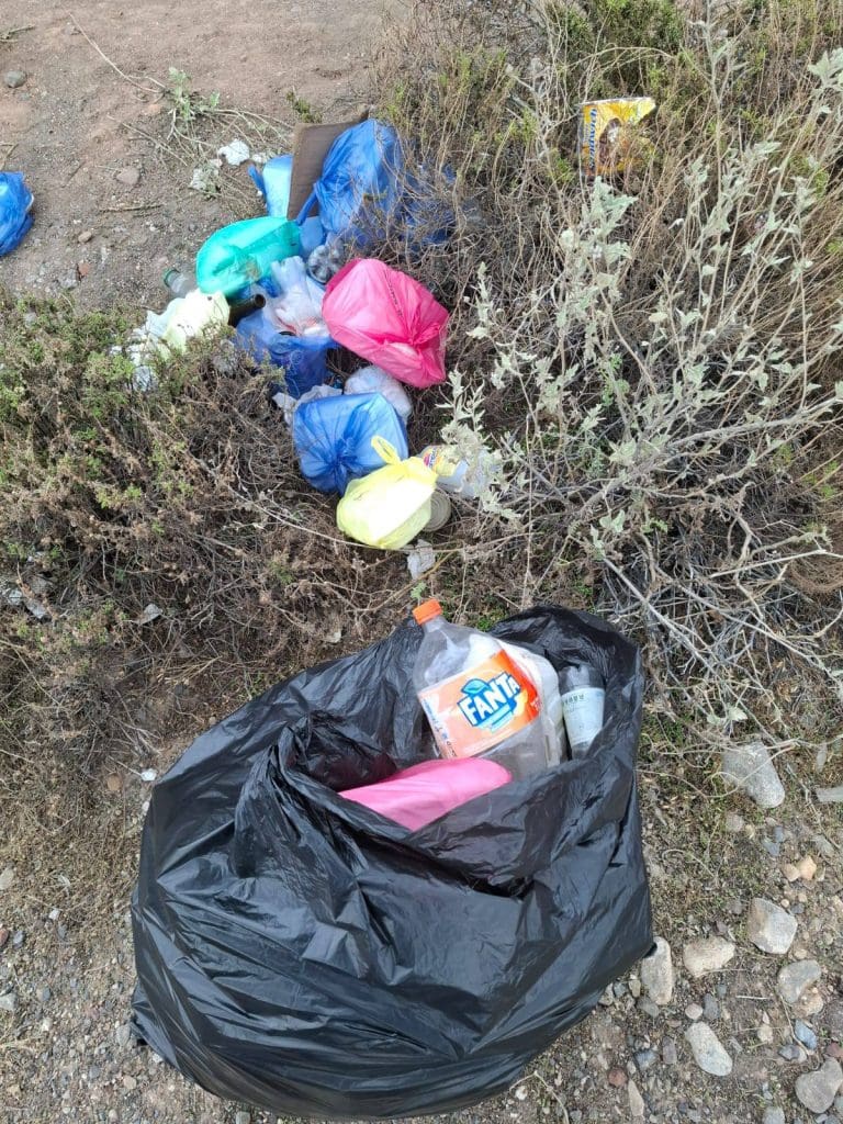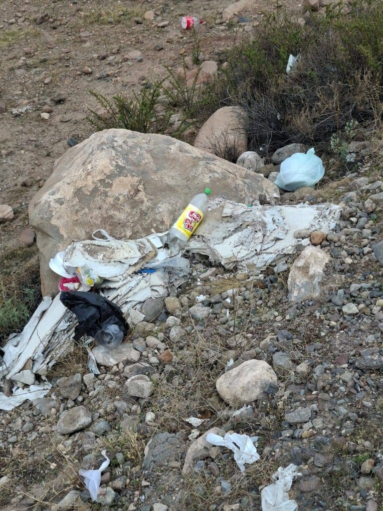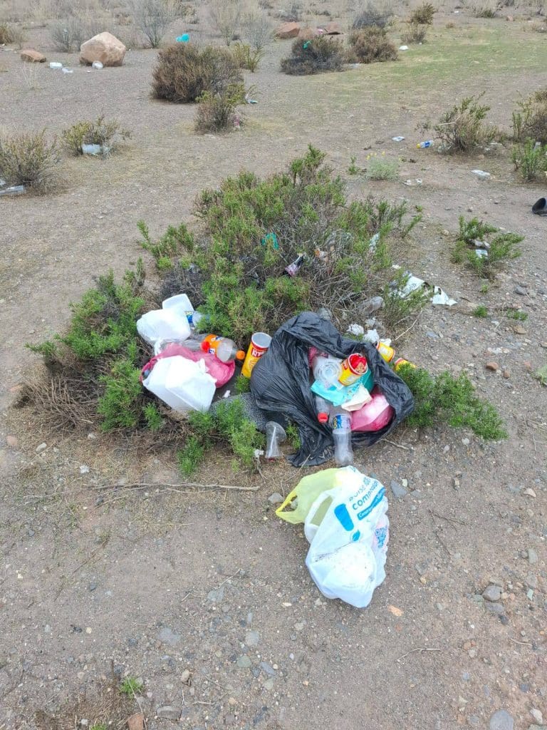 Los desechos corresponden principalmente a restos de comida, botellas, plásticos y residuos generados por transportistas que circulan por la ruta internacional. Sin embargo, desde la comunidad se remarcó que la contaminación no es atribuible a una sola nacionalidad, sino a una conducta reiterada de irrespeto al entorno natural.