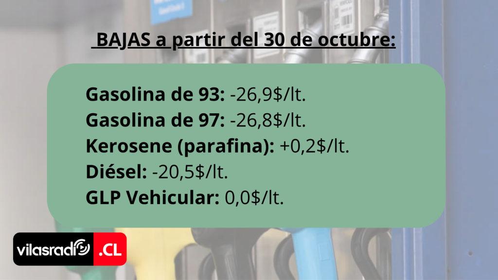 El informe de ENAP detalla que solo el kerosene (parafina) tendrá una leve variación al alza de $0,2 por litro, mientras que el GLP vehicular se mantendrá sin cambios. Cabe señalar que los valores informados hoy, se mantendrán hasta el próximo 19 de noviembre, fecha en la cual la empresa entregue un nuevo informe con los reajustes correspondientes.