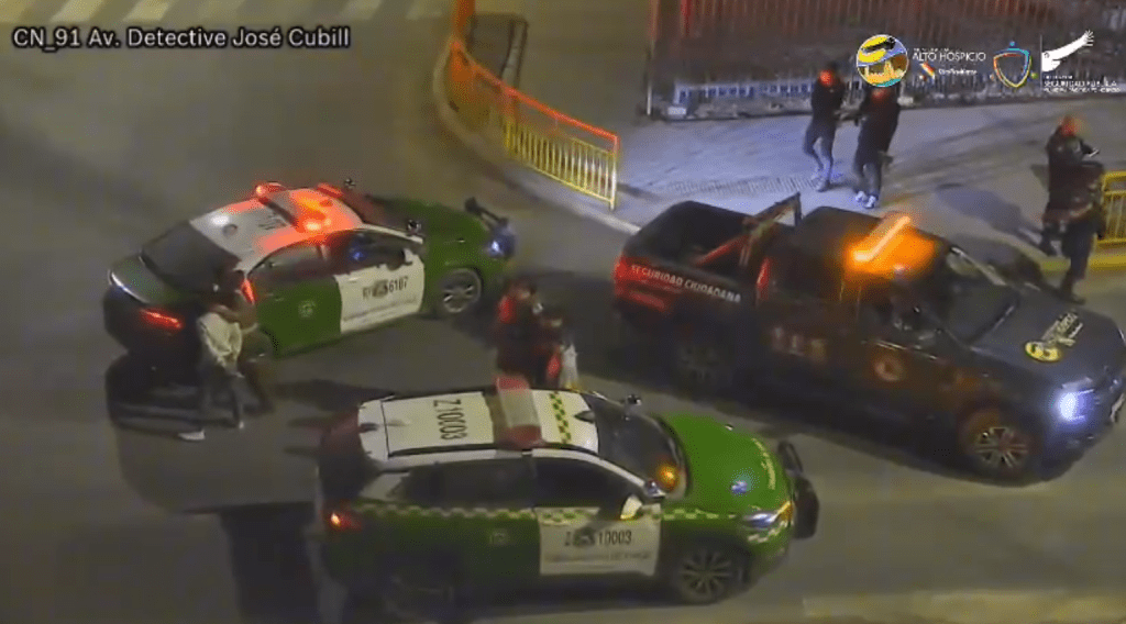 Con la información en tiempo real, la Central MAHO activó a los inspectores municipales, quienes alertaron de inmediato a Carabineros. La respuesta fue rápida. En la misma avenida, personal policial logró interceptar y fiscalizar el vehículo involucrado, procediendo a la detención de los cinco ocupantes.