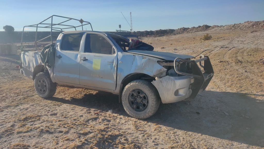 Un aparatoso accidente se registró en la carretera Uyuni–Colchani, a 23 kilómetros de la ciudad de Uyuni, cuando una camioneta oficial del Gobierno Autónomo Departamental de Potosí perdió el control y volcó.