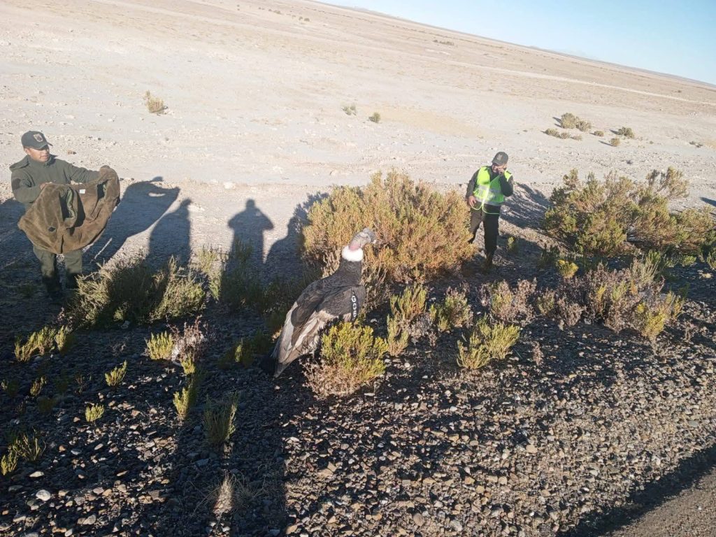 Durante el accidente, el cóndor fue expulsado de su caja de transporte, pero afortunadamente fue rescatado con vida por vecinos del sector, quienes colaboraron para trasladarlo y garantizar su atención.