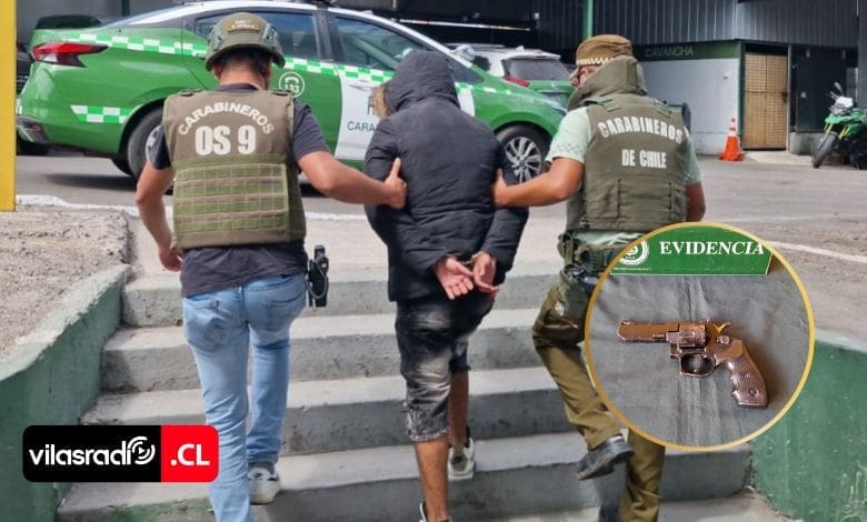 Según el reporte oficial, el sujeto manipulaba a plena vista un armamento de fuego. Al notar la proximidad del vehículo policial y percatarse de que se trataba de Carabineros, el joven intentó una maniobra evasiva, ocultando rápidamente el arma entre sus vestimentas con el fin de eludir la fiscalización.