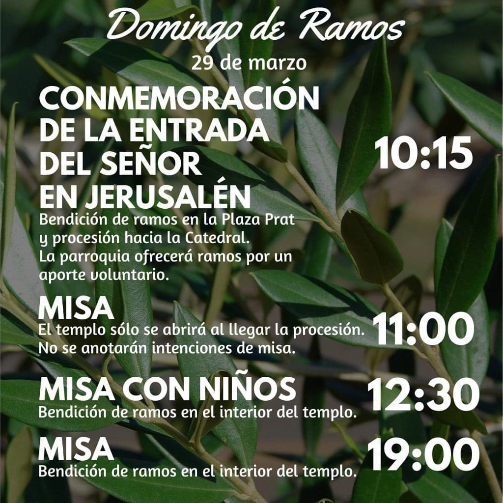 Domingo 29 marzo (Ramos)Bendición en Plaza Prat y procesión10:15