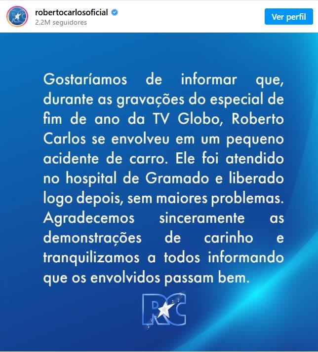 El accidente no dejó heridas visibles, pero sí una lección silenciosa: incluso las leyendas son humanas. Aun así, Roberto Carlos volvió a demostrar por qué su nombre trasciende generaciones. En lugar de titulares trágicos, el mundo recibió una historia de alivio, cuidado y continuidad.