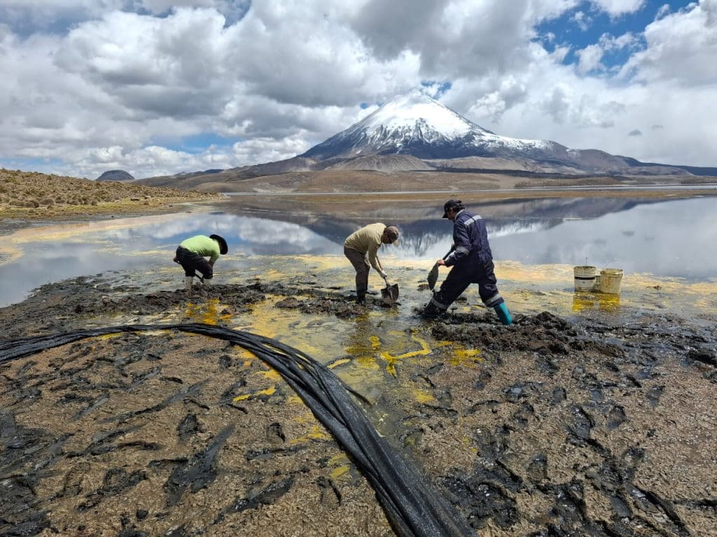 La tragedia ocurrió frente a la guardería de Conaf, en el kilómetro 179 de la ruta internacional. El aceite, inicialmente derramado sobre el pavimento, descendió como una corriente oscura hacia el bofedal, donde se acumuló formando una capa espesa que ya dejó aves inmovilizadas, peces sin posibilidad de sobrevivir y microorganismos contaminados. Una parte menor del derrame alcanzó también el Lago Chungará, cuyas algas y vegetación actuaron como la última defensa natural para evitar un daño mayor, aunque insuficiente para frenar la emergencia.
