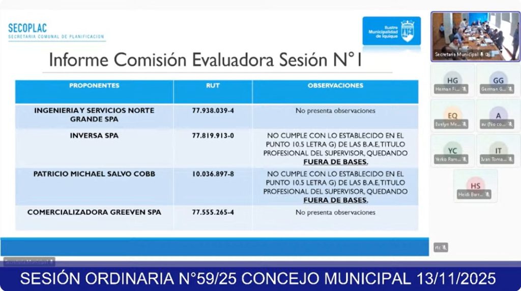 El análisis del proyecto derivó en un intercambio de opiniones entre concejales, luego de que Valdés planteara preocupaciones por el estado del centro de Iquique: