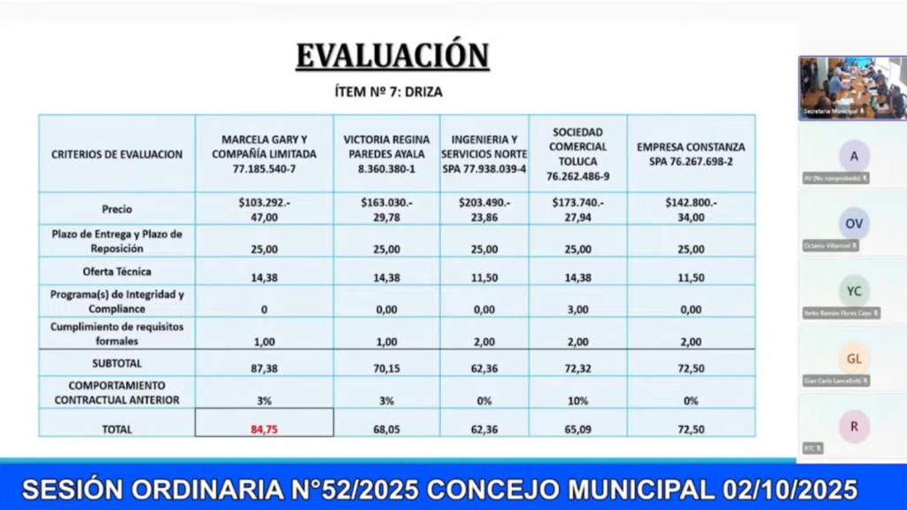 Tras aclarar las dudas, el concejal Domingo Campodónico sometió la propuesta a votación. Uno a uno, los concejales fueron entregando su voto favorable: Viguera, Lonza, Barra, Santos, Oliva, Vergara, Maldonado, Valdez, Jofré y finalmente Campodónico. Todos coincidieron en aprobar la propuesta, dejando constancia de una decisión unánime.
