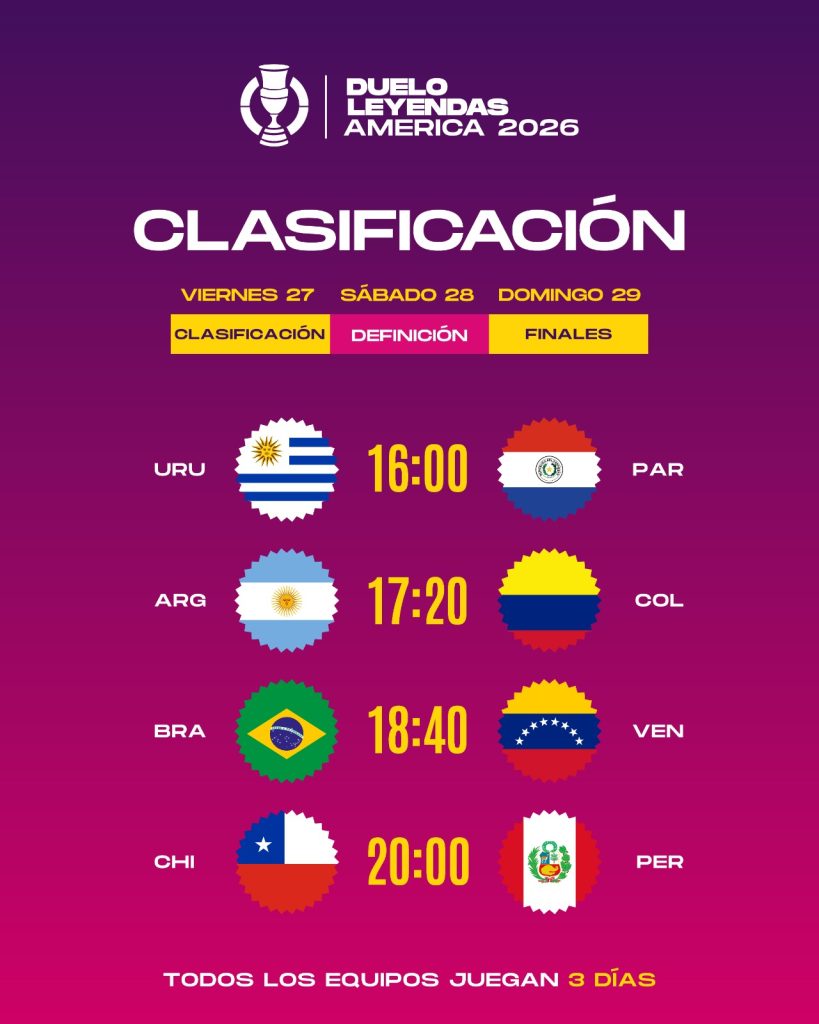 La Copa Duelo Leyendas de América ya tiene fecha y fixture oficial, evento deportivo que disputará en el Claro Arena con ocho selecciones que revivirán los clásicos más recordados del continente.