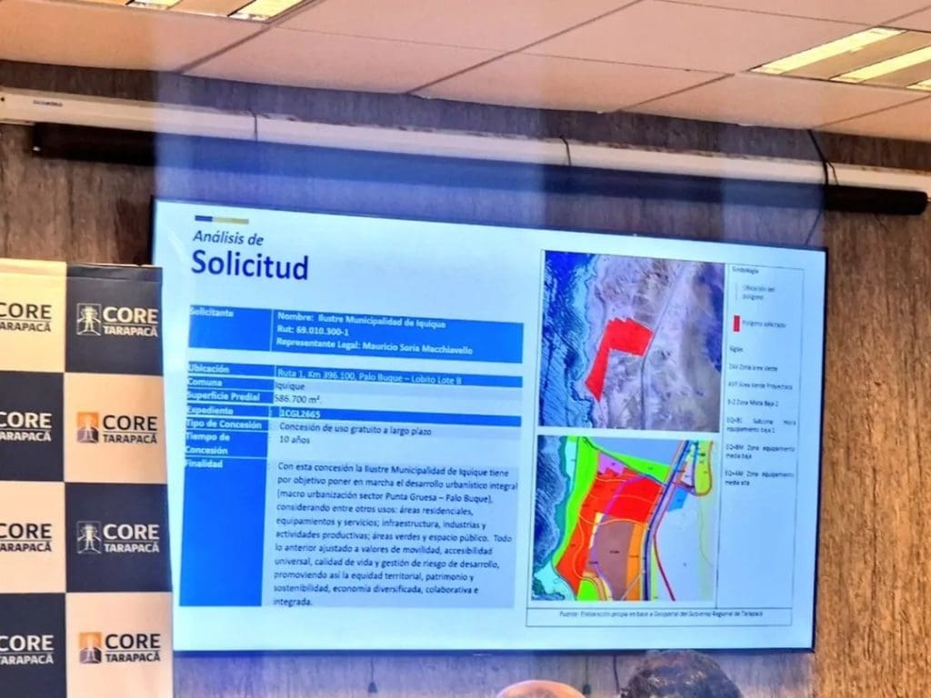 La Comisión de Vivienda, Desarrollo Urbano y Ordenamiento Territorial del Consejo Regional de Tarapacá aprobó la solicitud presentada por la Municipalidad de Iquique para otorgar una concesión gratuita de largo plazo sobre un terreno fiscal destinado al proyecto de macrourbanización Punta Gruesa – Palo Buque, iniciativa que busca habilitar un nuevo polo urbano al sur de la ciudad.