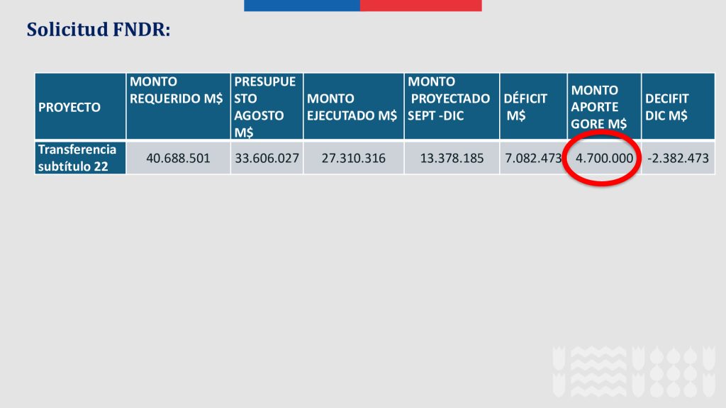 Según lo expuesto en la sesión, el Servicio de Salud Tarapacá informó oficialmente del déficit en abril, y pese a reiterar el requerimiento durante el año, el Ejecutivo Regional señaló que el límite posible de financiamiento era de 4.700 millones de pesos.