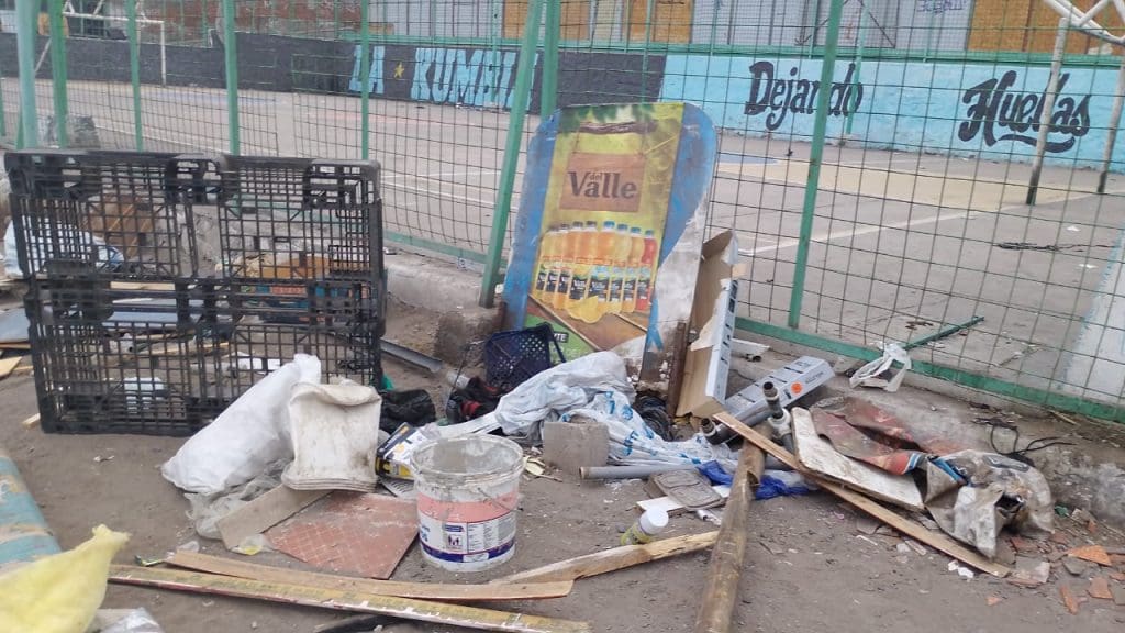 De acuerdo al relato vecinal, el problema se agravó durante el fin de semana, cuando personas desconocidas arrojaron escombros y residuos en el lugar, generando un microbasural en un espacio destinado al deporte.
