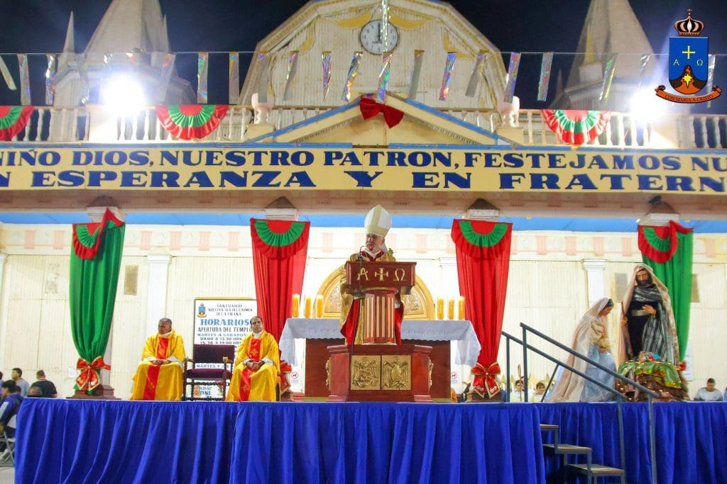 En este contexto, el obispo de la Diócesis de Iquique, Isauro Covili Linfati, ingresó al templo portando en sus brazos la imagen del Niño Dios, invitando a la comunidad a vivir la fe desde las tradiciones heredadas y a celebrar unidos, como Iglesia universal, la manifestación de Jesús al mundo. El gesto fue recibido con profunda emoción por los presentes, que reconocen al Emmanuelito como patrono del pueblo de La Tirana.