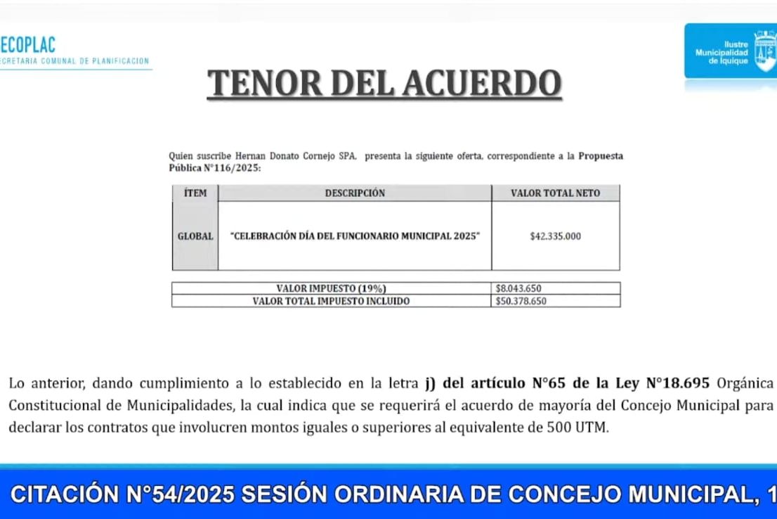 El Concejo Municipal de Iquique aprobó por mayoría la licitación para la celebración del Día del Funcionario Municipal 2025, una actividad que busca reconocer el trabajo de más de 600 funcionarios y funcionarias que forman parte de la administración local.