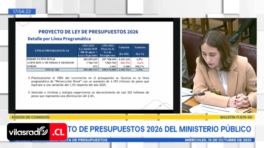 La directora también detalló cómo se distribuye el modesto aumento de recursos dentro del Ministerio Público: “Prácticamente el 100% del incremento se focaliza en la línea programática de persecución penal, con un aumento de 4.193 millones de pesos (1,5%), mientras que la atención a víctimas y testigos experimenta un decrecimiento de casi 202 millones de pesos, es decir, una disminución de 2,6%”.