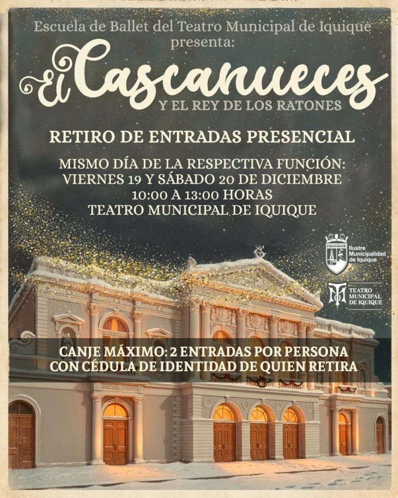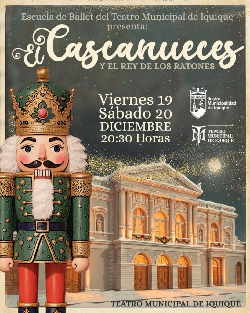 La Municipalidad de Iquique invita a toda la familia a vivir la magia de las fiestas con el ballet “El Cascanueces y el Rey de los Ratones”. Las presentaciones se realizarán este viernes 19 y sábado 20 de diciembre, transformando el escenario principal de la ciudad en un mundo de fantasía.
