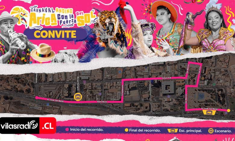 Este sábado 24 de enero, desde las 10:00 horas, el centro de Arica será escenario del Convite oficial del Carnaval Andino con la Fuerza del Sol 2026, una jornada que marca el inicio simbólico del carnaval y que permitirá a las agrupaciones folclóricas realizar su ensayo general en el espacio urbano.