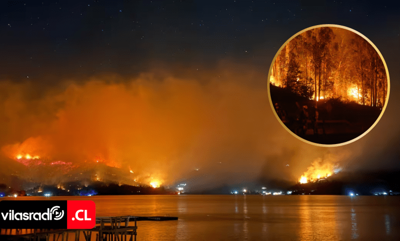 Registros difundidos por vecinos y medios locales, entre ellos Radio Bío Bío, muestran la magnitud del incendio y la complejidad del escenario que enfrentan los equipos de emergencia.