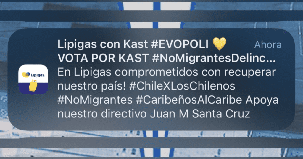 De acuerdo con los antecedentes, la notificación fue enviada mediante el sistema interno de la aplicación y contenía un llamado explícito a votar por el candidato presidencial José Antonio Kast, situación que la empresa atribuyó a un acceso no autorizado a su plataforma de notificaciones. El mensaje fue recibido por usuarios de la aplicación a nivel nacional.