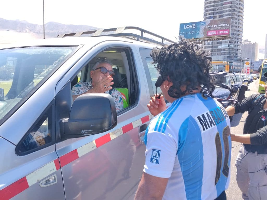 Durante el despacho en vivo, Antonio Bello contó que Iquique lo ha recibido con un cariño especial, incluso más intenso que en otras ciudades del país. “La gente acá es distinta, te sigue el juego, se ríe, se acerca. Eso se agradece”, comentó mientras no dejaba de interactuar con quienes se detenían a mirar. Su personaje de Maradona —mezcla de humor, picardía y exageración— fue el protagonista de la jornada.