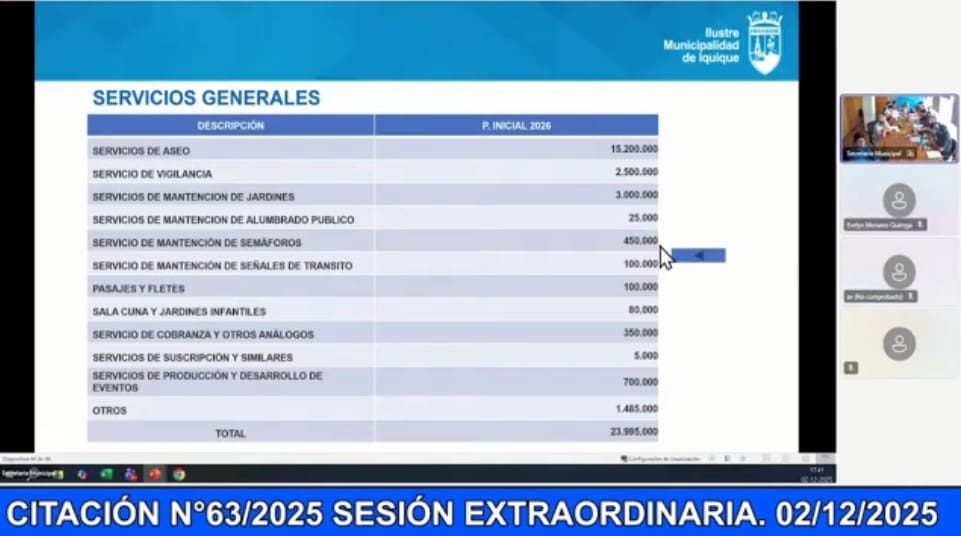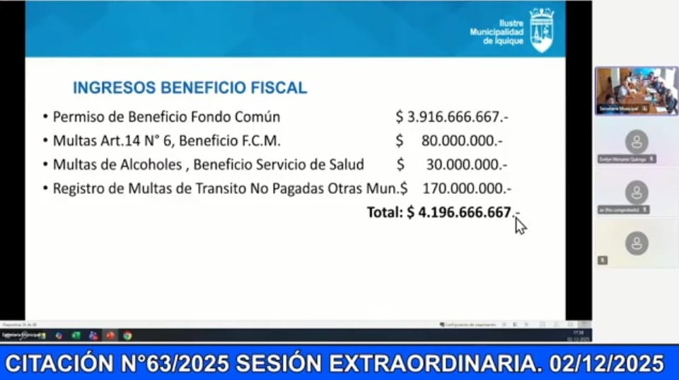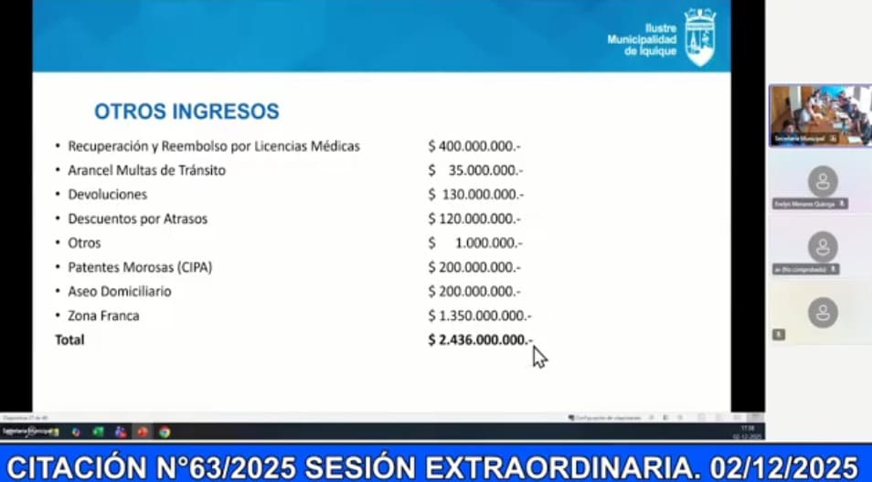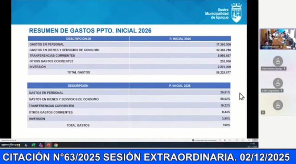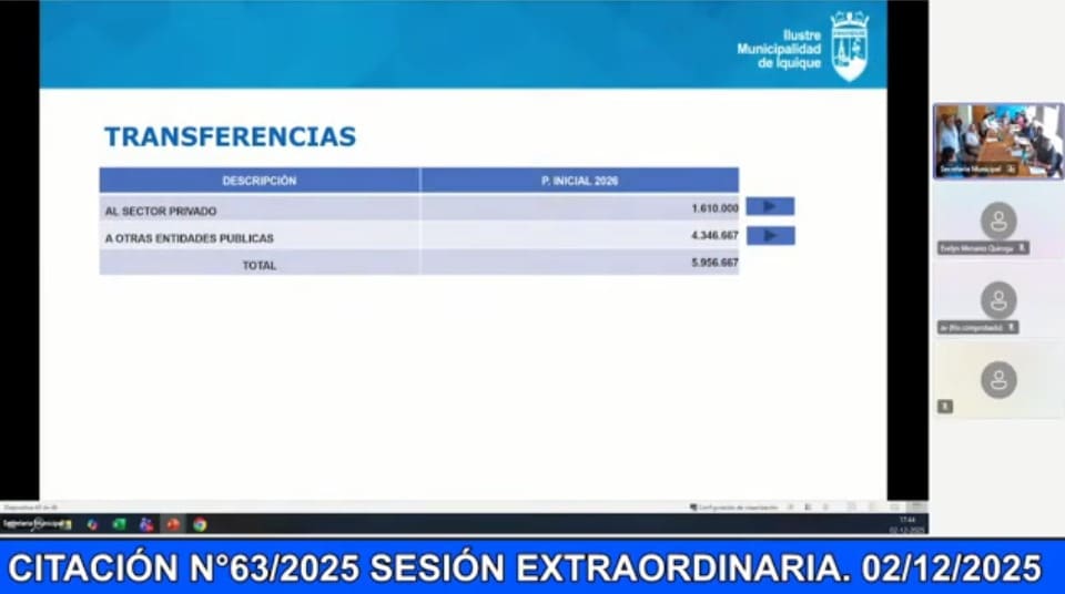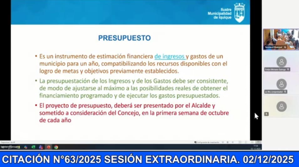 El Concejo Municipal de Iquique aprobó el Presupuesto Municipal 2026, que supera los $58 mil millones, en una sesión extensa y marcada por cuestionamientos transversales a la planificación financiera, la estructura de gastos y la falta de detalle en varias glosas. Aunque finalmente se alcanzaron los votos necesarios, el debate dejó en evidencia tensiones entre la administración municipal y distintos ediles, quienes exigieron mayor claridad sobre prioridades y ejecución futura.