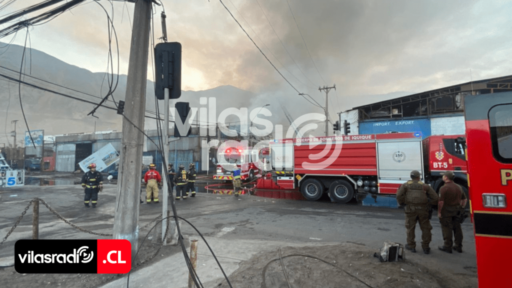 El incendio se inició a las 03:40 horas, movilizando a la totalidad de las compañías del Cuerpo de Bomberos de Iquique, con un despliegue de 22 unidades y cerca de 170 voluntarios. Las llamas afectaron cinco galpones que almacenaban vehículos, motores, repuestos, neumáticos, ropa y otros materiales altamente combustibles.