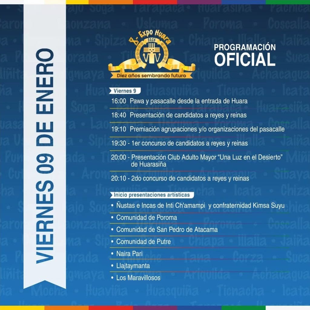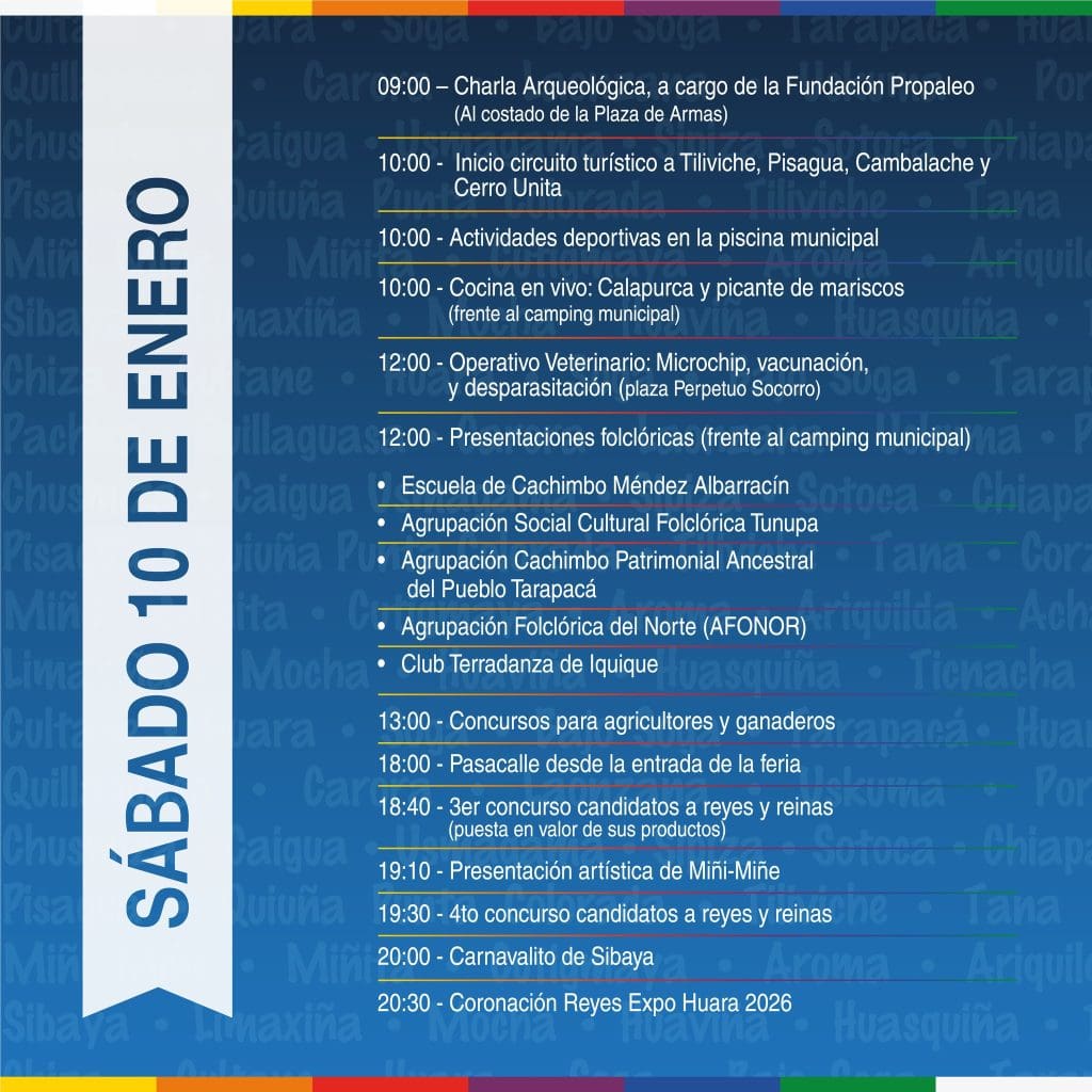 Bajo el lema “10 años sembrando futuro”, la Municipalidad de Huara anunció la realización de la Expo Huara 2026, evento que conmemora su décima versión consolidándose como el encuentro cultural y patrimonial más importante de la Provincia del Tamarugal. La festividad comenzará este viernes 9 de enero a partir de las 16:00 horas, reuniendo en la capital comunal a agricultores, artesanos y expositores de todo el territorio.