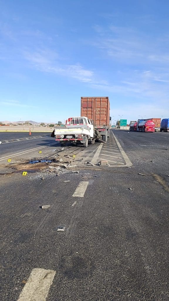 Kilómetro 1838, entrada sur a Huara — la madrugada rozaba la mañana y el silencio de la Ruta 5 Norte fue quebrado por un estruendo que resonó como un latido en el vasto desierto de Tarapacá. Un potente choque entre una camioneta tipo Porter y un camión transportador que se encontraba detenido dejó un hombre fallecido en el lugar, confirmaron las autoridades que ya se encuentran desplegadas en el sitio.