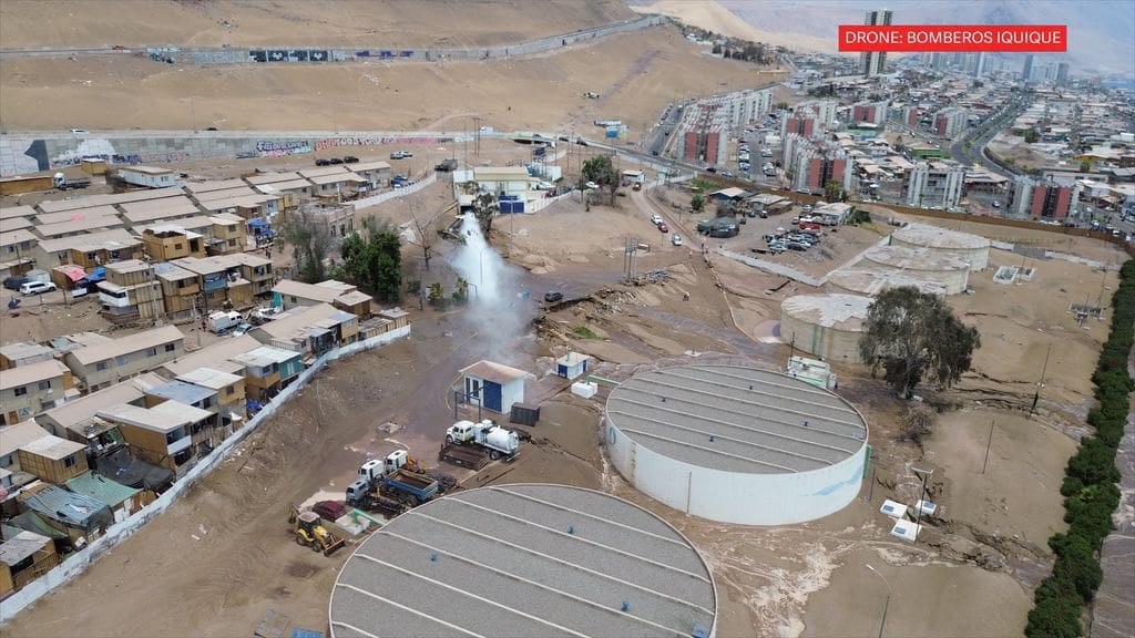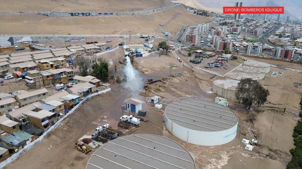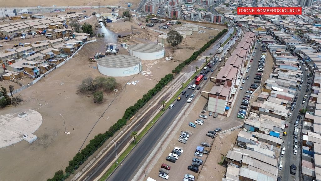 Durante la tarde de este día se registró una emergencia por filtración de agua en el Barrio Emergencia de Iquique, específicamente en el sector de avenida La Tirana, entre Tadeo Haenke y Escapiña, situación que generó preocupación entre los vecinos ante posibles daños en viviendas.