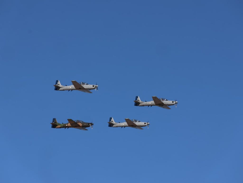 La ceremonia concluyó con un desfile aéreo y terrestre, que incluyó el sobrevuelo de aeronaves A-29 y la presentación de unidades de formación y representantes de los grupos tácticos de la Iª Brigada Aérea, exhibiendo sus dotaciones y sistemas de armas ante la tribuna de honor.