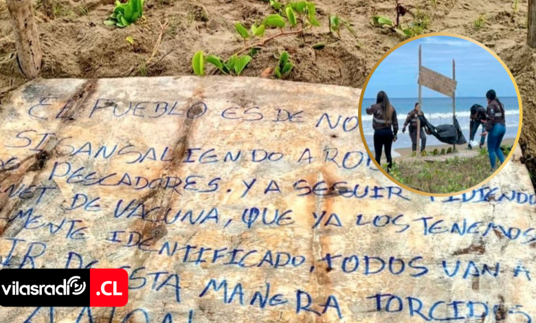 De acuerdo con los primeros antecedentes, los restos fueron encontrados colgados en estructuras improvisadas de caña, y sobre ellos se habría instalado un mensaje intimidatorio, presuntamente dirigido a personas vinculadas al robo y la extorsión en el sector pesquero local.