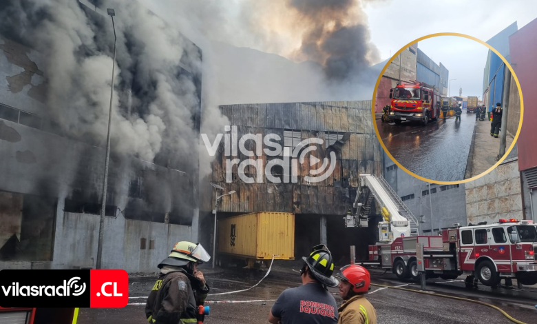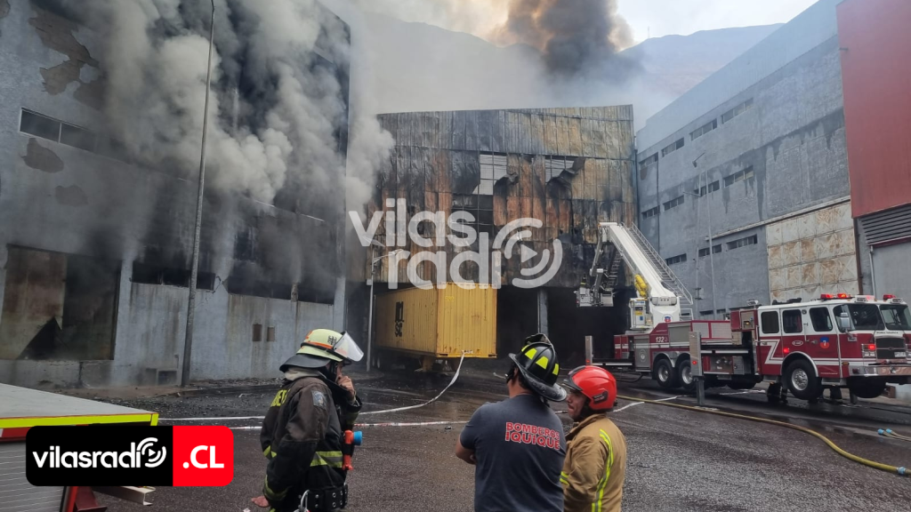 Bomberos de Iquique y unidades de apoyo de Alto Hospicio y Pozo Almonte llevan más de 12 horas trabajando para controlar un incendio de gran magnitud que afecta cuatro galpones en la Manzana 23 del recinto amurallado de ZOFRI.