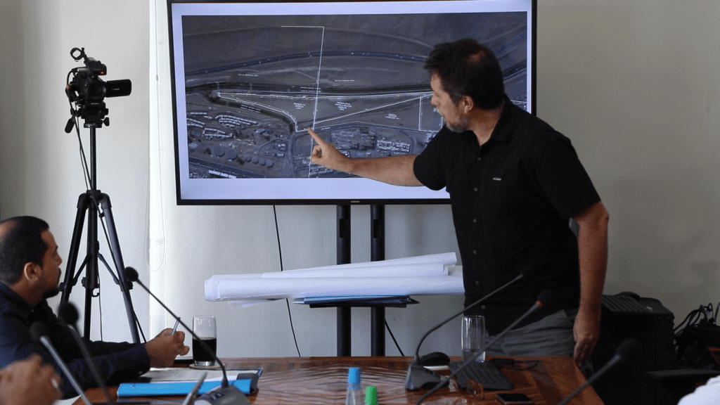 La preocupación no es menor. Un error en los deslindes no solo retrasaría el proyecto, sino que podría hacer inviable el terminal en el sitio escogido, abriendo un nuevo ciclo de estudios, costos adicionales y años de atraso. El gobernador José Miguel Carvajal lo expresó con claridad durante la sesión: “Si existiera una colisión real entre ambos proyectos, ahí sí sería preocupante. Por eso se está revisando antes de aprobar la concesión del terreno”.