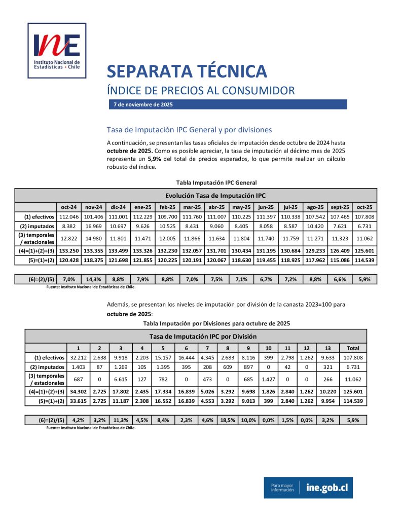 El informe del INE detalló que seis de las trece divisiones que componen la canasta del IPC registraron alzas, mientras que cinco tuvieron descensos y dos no presentaron variaciones. Entre los rubros que más aumentaron destacaron alimentos y bebidas no alcohólicas (0,5%), con una incidencia de 0,106 puntos porcentuales.