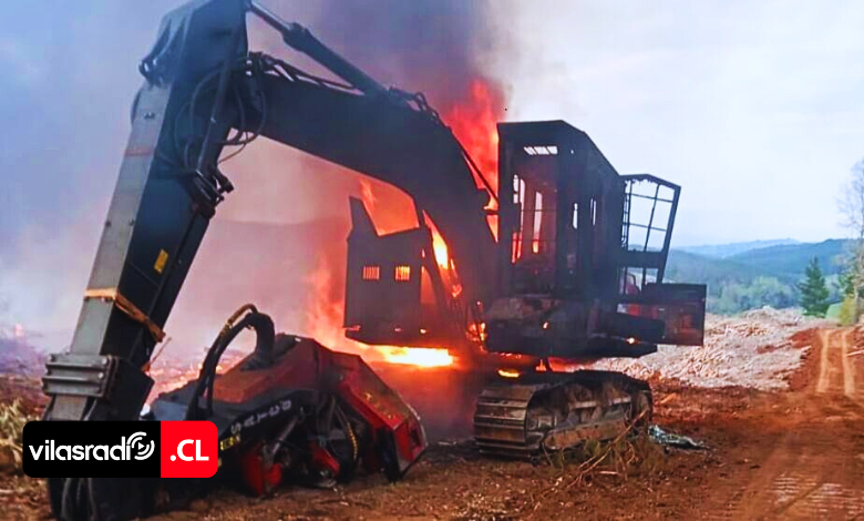 En Cunco, las llamas devoraron el silencio del campo a eso de las tres de la madrugada. Los trabajadores del predio La Galicia llegaron al amanecer y encontraron solo restos carbonizados: dos skidders y cinco excavadoras destruidas, y un lienzo con mensajes alusivos a la causa mapuche radical.