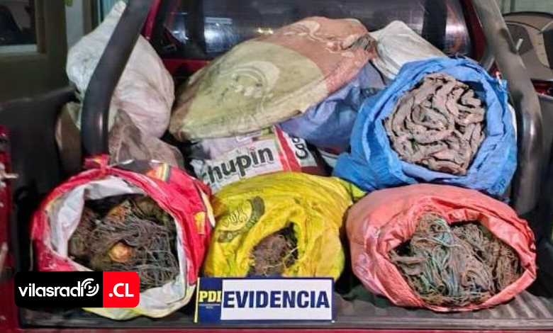 Detectives de la Biro Arica, junto a la Fiscalía y Carabineros, incautaron 1,2 toneladas de cobre robado que eran trasladadas ocultas en dos camiones interceptados en Poconchile, en la Ruta 11-CH. Los conductores, ambos chilenos, quedaron detenidos y luego formalizados por receptación, mientras la investigación se centra ahora en establecer el origen del metal y las rutas delictuales involucradas.