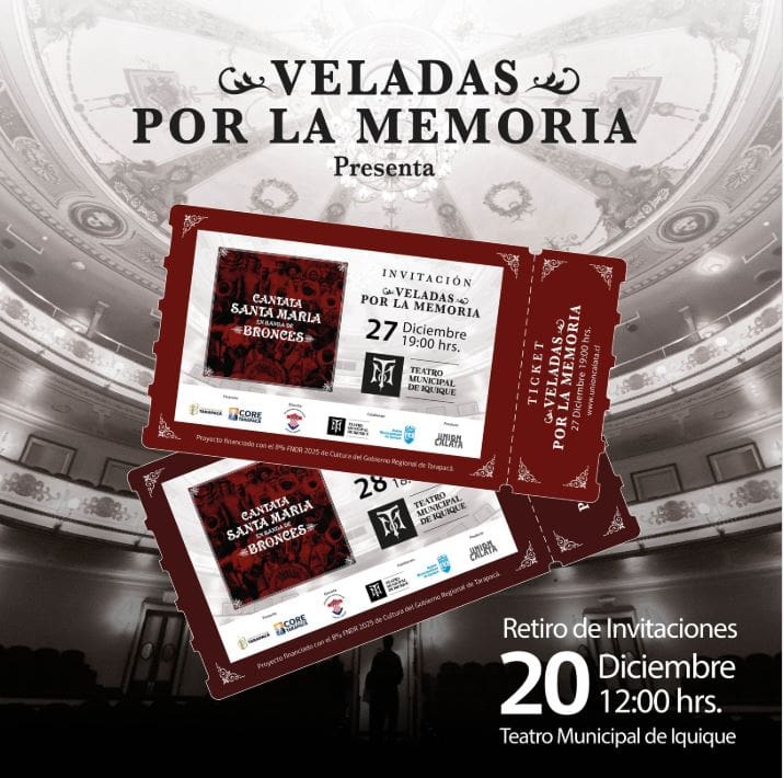 El Teatro Municipal de Iquique, reabierto tras décadas de espera, será el escenario donde la historia volverá a sonar con fuerza. Este sábado 27 y domingo 28 de diciembre, a las 19:00 horas, el emblemático recinto albergará una nueva y poderosa versión de la Cantata Santa María, una de las obras más trascendentales de la música chilena, reinterpretada desde la identidad sonora del Norte Grande.