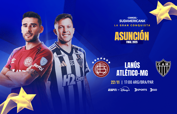 Este sábado 22 de noviembre, a partir de las 17:00 horas de Paraguay (misma hora de Chile), los clubes Lanús (ARG) y Atlético Mineiro (BRA) se verán las caras en la Gran Final de la Copa Sudamericana 2025.