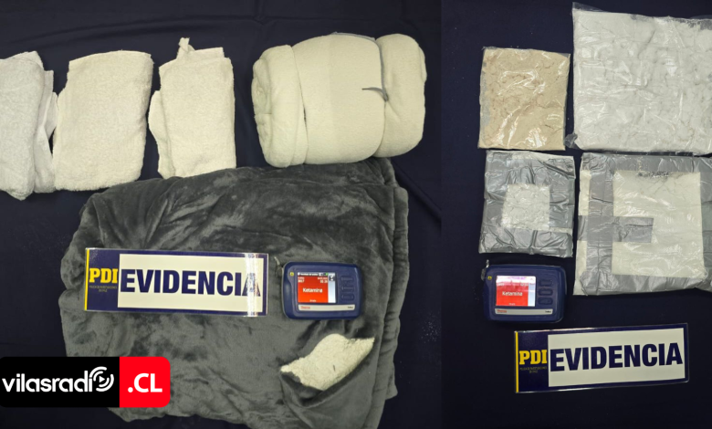 La Policía de Investigaciones (PDI) de Arica detuvo a dos extranjeros que intentaban ingresar más de 11 kilos de ketamina al país. Los detenidos, uno de nacionalidad peruana y otro colombiana, fueron detectados en el Complejo Fronterizo Chacalluta cuando intentaban ingresar al territorio nacional en un taxi internacional.