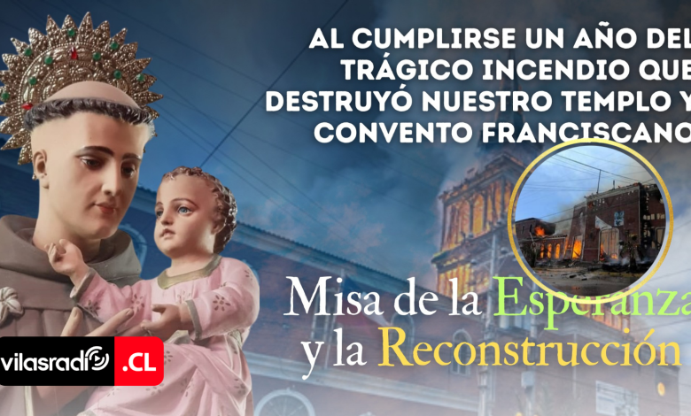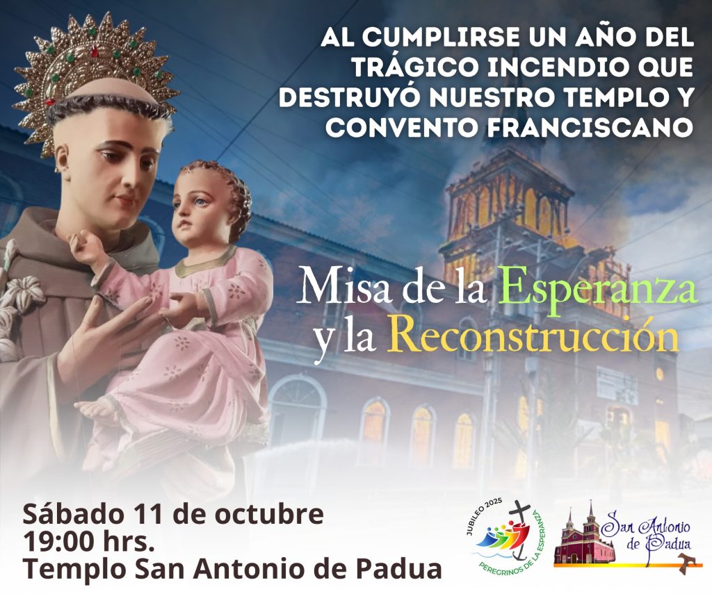 El próximo 11 de octubre se cumple un año del fatal incendio que arrasó con el convento franciscano y el templo parroquial de San Antonio de Padua en Iquique y para ello la comunidad invita a los vecinos a participar de la Misa de la Esperanza y la Reconstrucción.