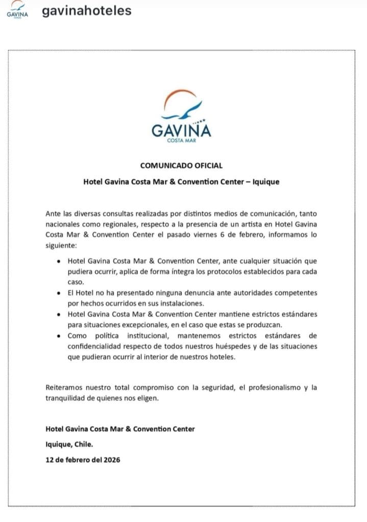 El Hotel Gavina Costa Mar & Convention Center de Iquique salió públicamente a aclarar su postura luego de que trascendieran versiones que apuntaban a que el cantante Américo habría provocado serios daños en una de sus habitaciones y que el recinto habría presentado una denuncia ante Carabineros.