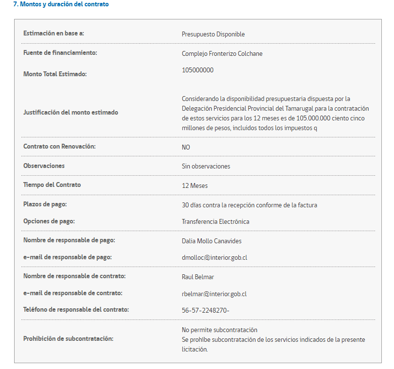 El proceso para reforzar las labores operativas del Complejo Fronterizo Colchane avanzó un paso clave: el pago asociado al inicio del contrato ya fue emitido por la Delegación Presidencial Provincial del Tamarugal, que se encuentra ejecutando la adjudicación del servicio de apoyo a la coordinación del recinto fronterizo. Llama la atención que en los detalles de la licitación, no se especifica si se trata de una sola persona, o varias, quienes serán contratadas para realizar los trabajos solicitados.