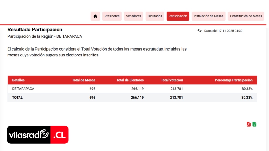 La Región de Tarapacá confirmó su alto compromiso cívico en las últimas Elecciones Presidenciales y Parlamentarias, registrando un impresionante 80,33% de participación ciudadana. Este porcentaje, alcanzado en el marco del voto obligatorio vigente, se traduce en 213.781 votos emitidos de un padrón de 266.119 electores.