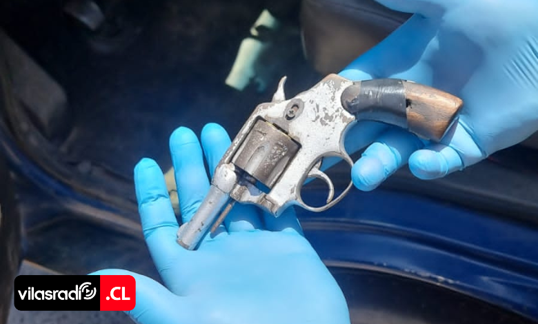 Al revisar el vehículo, los funcionarios notaron el nerviosismo de los ocupantes. Fue entonces cuando uno de los carabineros divisó, entre los asientos delanteros, el brillo metálico de un arma. La inspección posterior confirmó las sospechas: se trataba de un revólver a fogueo de color gris, aparentemente modificado para disparar, sin marca ni modelo visibles, y cargado con seis municiones calibre .32.