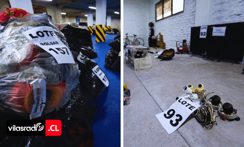 Entre otros lotes destacados se encuentran vehículos de Aduanas, Sernageomin, la Dirección del Trabajo y municipalidades como Estación Central y Vitacura, además de 23 lotes de mochilas y bultos olvidados, y 30 lotes de rezagos de Correos de Chile.